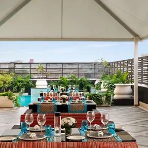 Das 5-Sterne Hotel Hilton Jaipur befindet sich in der Nähe von einem Business- Bezirk von Jaipur. Das Hotel in dem wirtschaftlichen Viertel von Jaipur verfügt über einen Außenpool und ein Fitnesscenter.