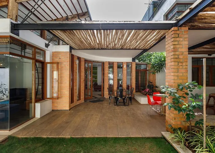 Villa The Krafted Backyard offre un hébergement pour 13 personnes à Bangalore et met à leur disposition un parking privé gratuit et une piscine en plein air. Ce lieu est à 4,3 km du Sri Kambada Lakshmi Narasimha Swamy Temple.